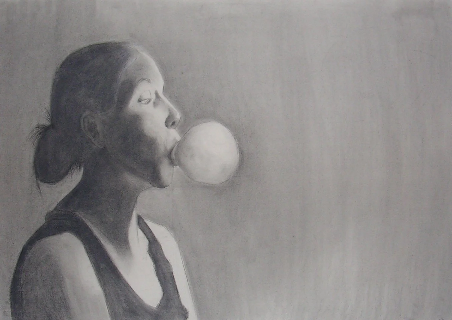 Self Portrait: 24 x 36”; Graphite and Charcoal on grey toned paper