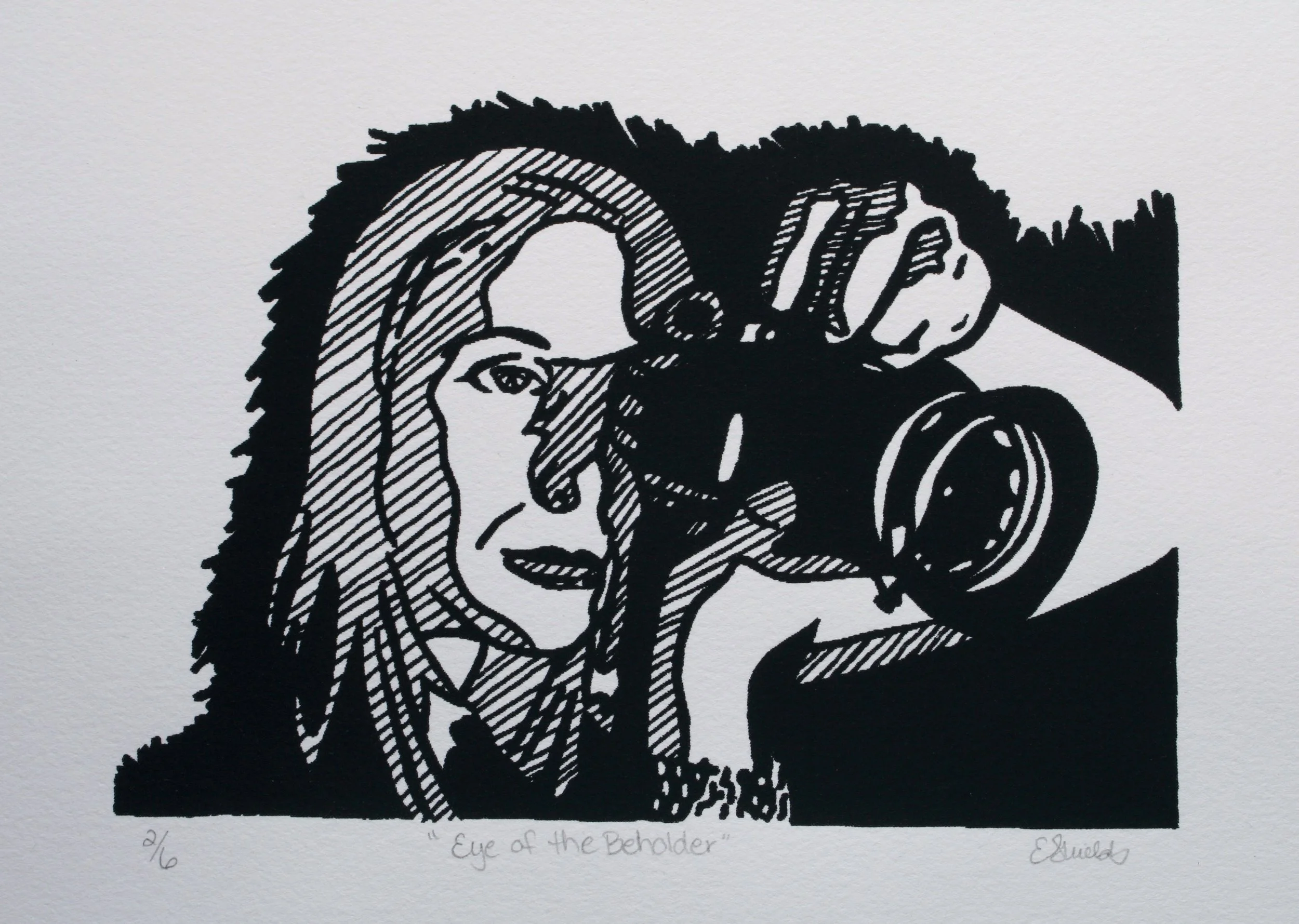 “Eye of the Beholder”: A one color design that was inspired by my love of photography and graphic imagery